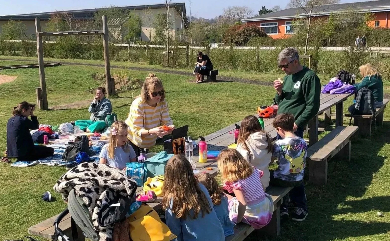 Shelters and seating provide resting or meeting points for schools, nurseries or other group outings, making the playground more suitable for educational and recreational use.